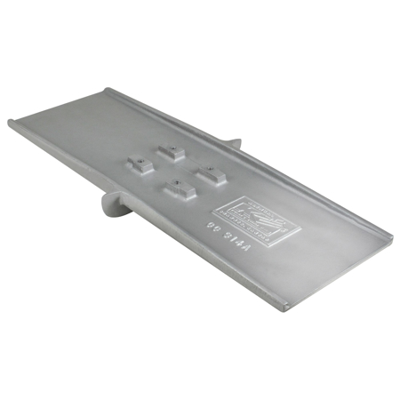 Airplane groover cuts clean, smooth professional control joints every time. Made from the highest quality of cast aluminum with a broken-in face. Both the front and the back edge of the groover are curved up to avoid any gouging while in use. The tool creates a groove in wet cement to control expansion and contraction and relieve stress points. This 8" groover features a bit that has a 3/8" radius and is 3/4" deep and 7/8" wide. The single-piece formed groove provide a smooth professional finish. The closed end groover bit eliminates possible build up within the tool. The bit extends out both the front and back of the groove for easy back forth movement. The 24" wide blade is squared off to fit in corners and along forms. The tool accepts a 4-hole bracket of the user's choosing. The EZY-Tilt® II Bracket (#CC294) is recommended.
