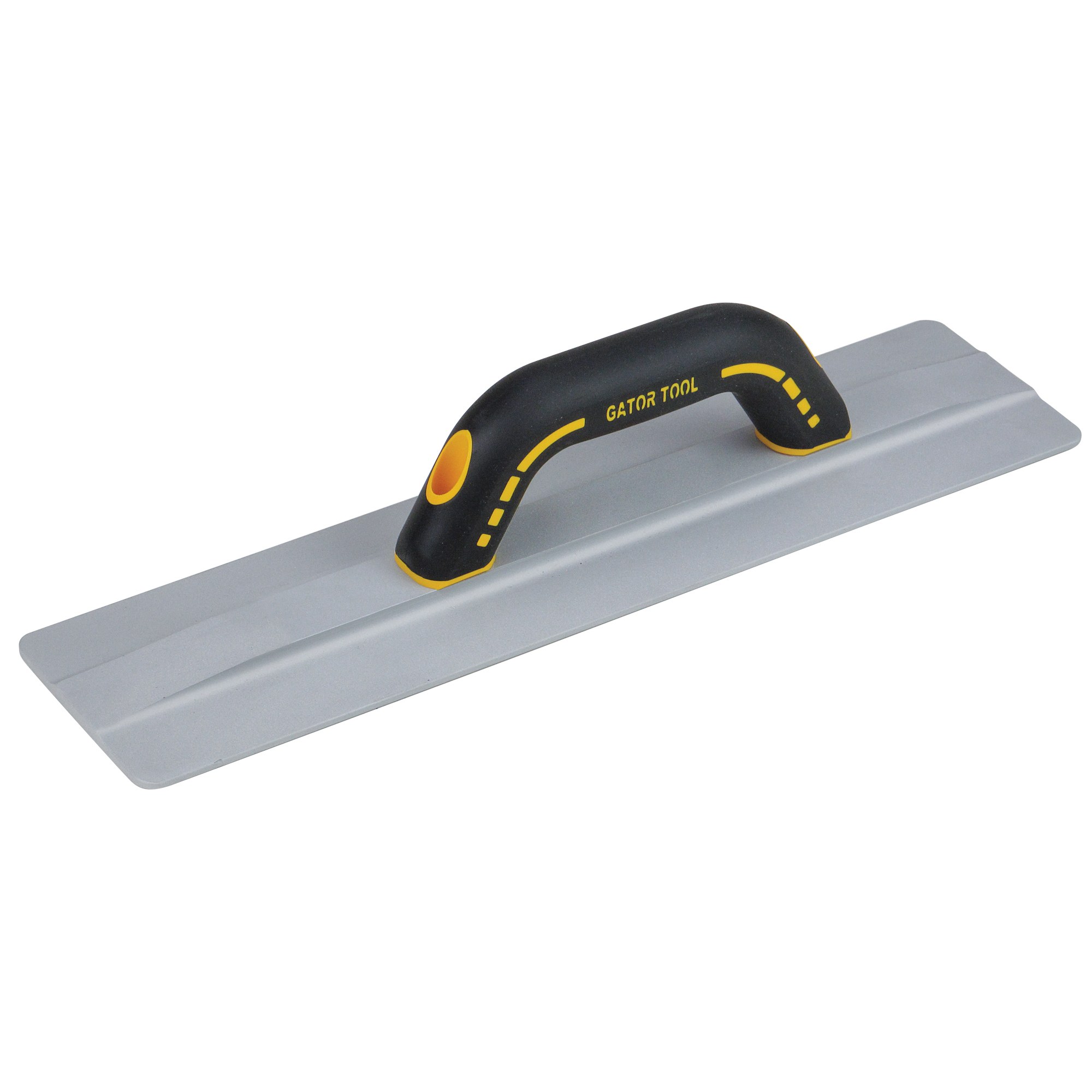 This hand float is designed for optimal floating action on cement. The 16" blade made from ultra-light and ultra-strong GatorLoy™, a unique aluminum alloy. The uniquely wide blade covers more surface area. The large 4" wide blade has square ends that allow the user to float along forms and into corners with rounded corners to minimize gouging. The durable blade smooths and levels concrete before finishing. Use this float to open up the pores on the surface to allow for proper evaporation. The smooth sandblasted finish and broken-in edges create a float that is ready to use. This Gator Tools™ hand float is complete with an Ultra Grip™ handle. The handle is designed with ample knuckle clearance with a soft grip finish for comfort, yet a firm grip. The black handle with yellow highlights is easy to spot on the jobsite.